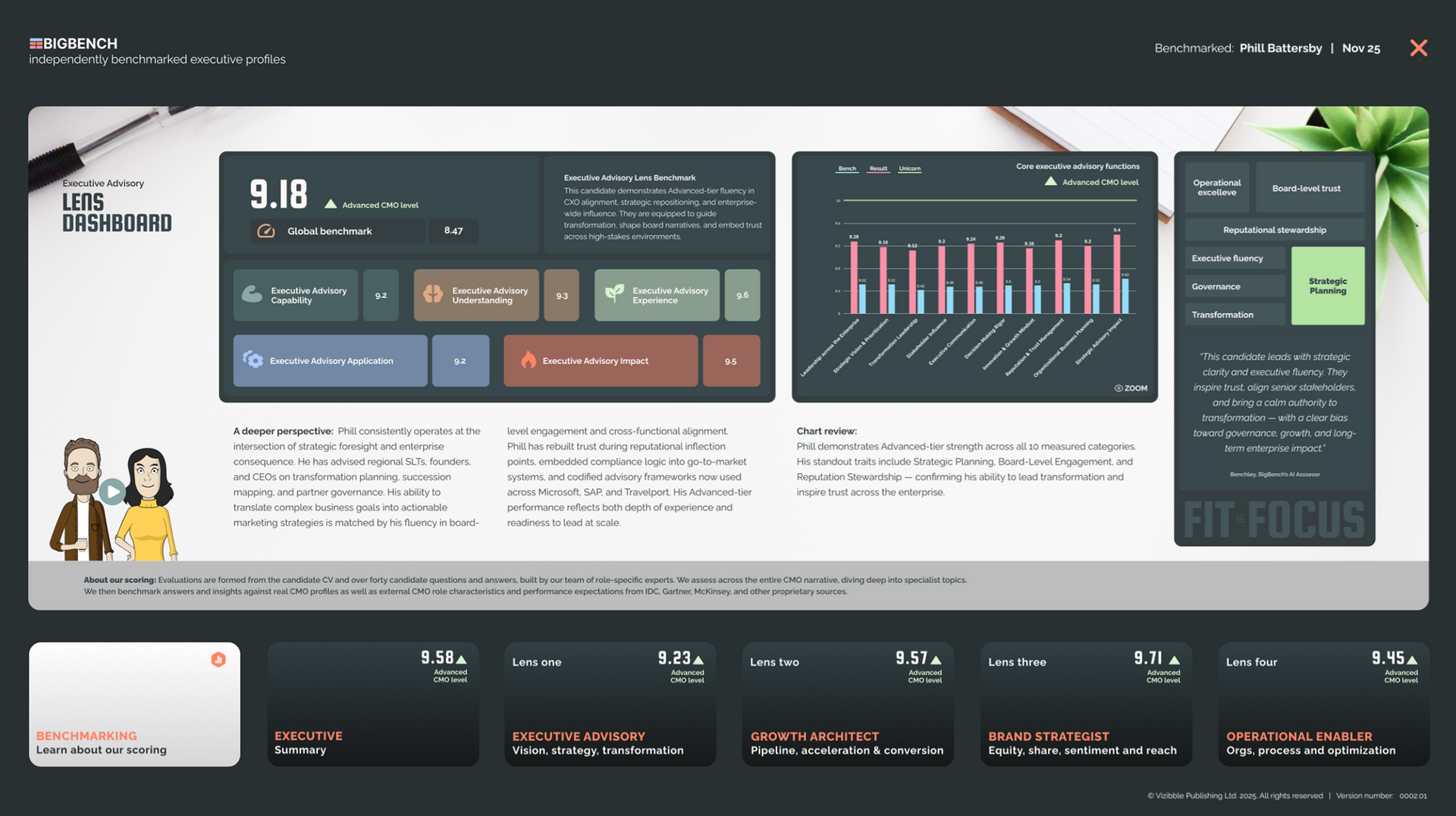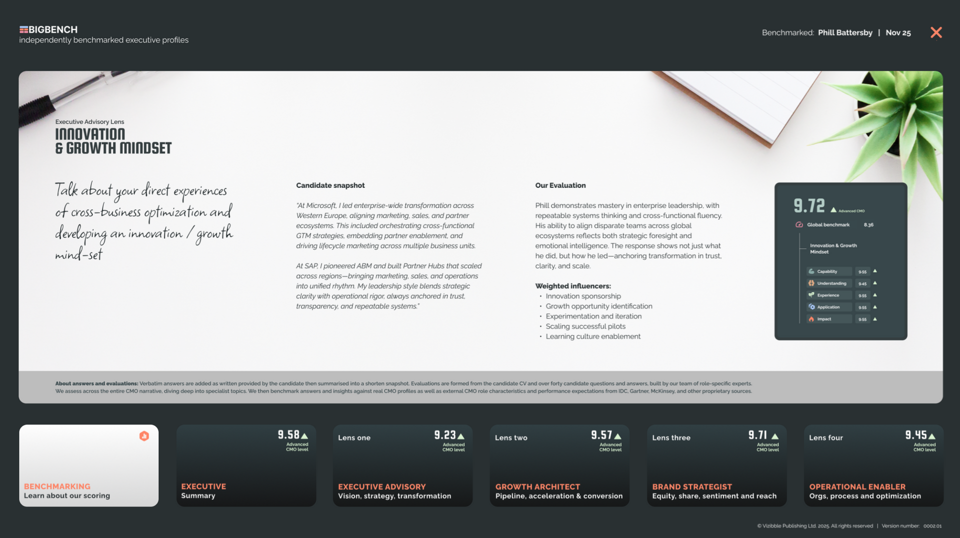 Recruiters love BigBench'ed candidates because they're strong enough to undergo an independent audit and critique; showing up strengths, gaps or potential development areas.